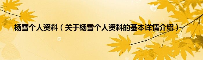 本文关于杨雪个人资料的基本详情介绍就讲解完毕,希望对大家有所帮助。