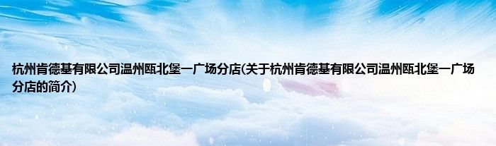 本文关于杭州肯德基有限公司温州瓯北堡一广场分店的简介就讲解完毕,希望对大家有所帮助。