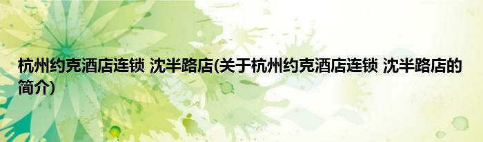 本文关于杭州约克酒店连锁 沈半路店的简介就讲解完毕,希望对大家有所帮助。