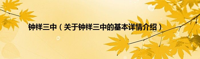 本文关于钟祥三中的基本详情介绍就讲解完毕,希望对大家有所帮助。