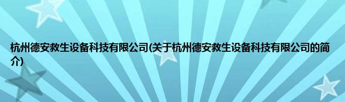 本文关于杭州德安救生设备科技有限公司的简介就讲解完毕,希望对大家有所帮助。