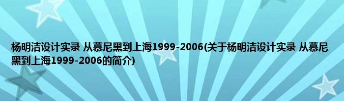 本文关于杨明洁设计实录 从慕尼黑到上海1999-2006的简介就讲解完毕,希望对大家有所帮助。