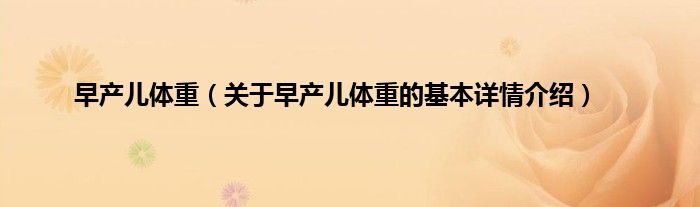 本文关于早产儿体重的基本详情介绍就讲解完毕,希望对大家有所帮助。