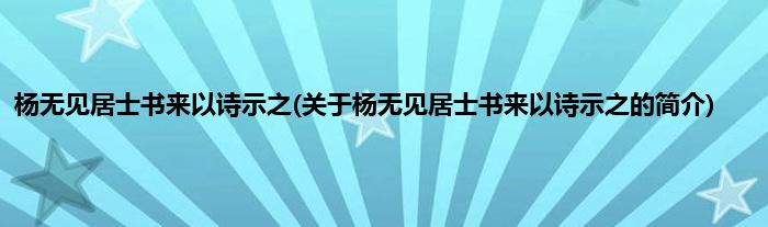 本文关于杨无见居士书来以诗示之的简介就讲解完毕,希望对大家有所帮助。