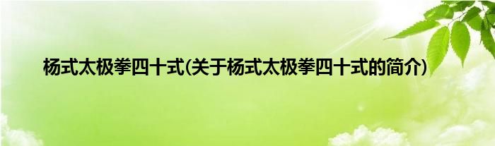 大家好,杨式太极拳四十式,关于杨式太极拳四十式的简介很多人还不知道,现在让我们一起来看看吧!