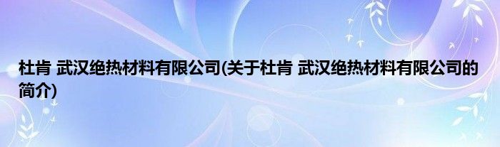 杜肯 武汉绝热材料有限公司(关于杜肯 武汉绝热材料有限公司的简介)