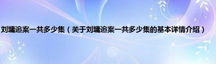 刘墉追案一共多少集(关于刘墉追案一共多少集的基本详情介绍)