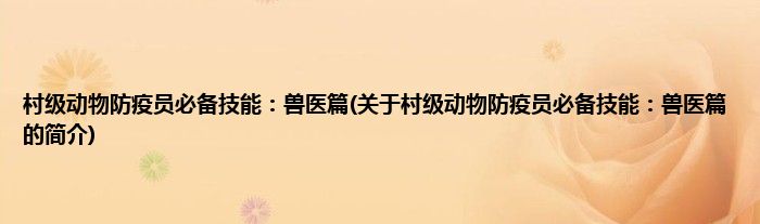 大家好,村级动物防疫员必备技能:兽医篇,关于村级动物防疫员必备技能:兽医篇的简介很多人还不知道,现在让我们一起来看看吧!