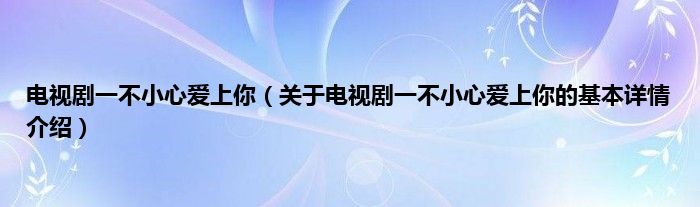 本文关于电视剧一不小心爱上你的基本详情介绍就讲解完毕,希望对大家有所帮助。
