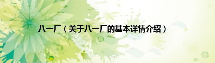 本文关于八一厂的基本详情介绍就讲解完毕,希望对大家有所帮助。