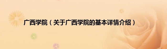 本文关于广西学院的基本详情介绍就讲解完毕,希望对大家有所帮助。