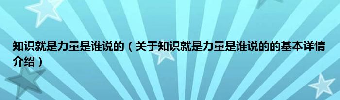 本文关于知识就是力量是谁说的的基本详情介绍就讲解完毕,希望对大家有所帮助。