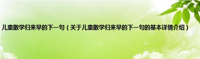 本文关于儿童散学归来早的下一句的基本详情介绍就讲解完毕,希望对大家有所帮助。