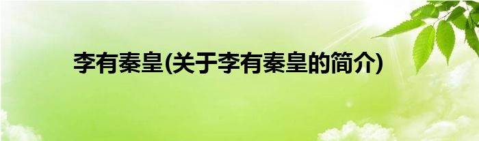 本文关于李有秦皇的简介就讲解完毕,希望对大家有所帮助。