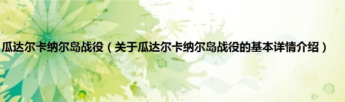 本文关于瓜达尔卡纳尔岛战役的基本详情介绍就讲解完毕,希望对大家有所帮助。