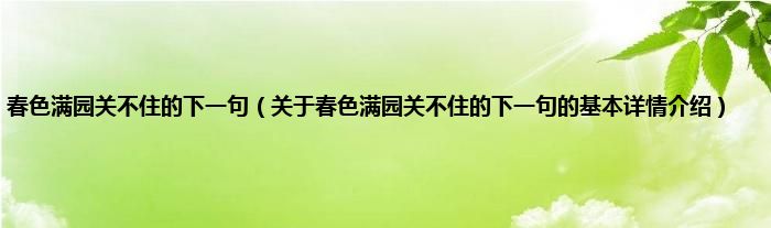本文关于春色满园关不住的下一句的基本详情介绍就讲解完毕,希望对大家有所帮助。