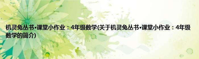 本文关于机灵兔丛书·课堂小作业:4年级数学的简介就讲解完毕,希望对大家有所帮助。