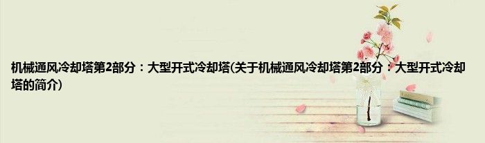 机械通风冷却塔第2部分:大型开式冷却塔(关于机械通风冷却塔第2部分:大型开式冷却塔的简介)