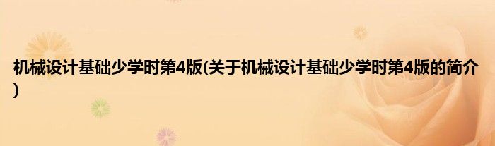 机械设计基础少学时第4版(关于机械设计基础少学时第4版的简介)