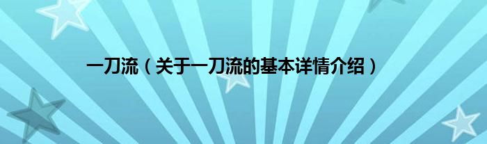 本文关于一刀流的基本详情介绍就讲解完毕,希望对大家有所帮助。