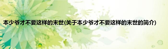本文关于本少爷才不要这样的末世的简介就讲解完毕,希望对大家有所帮助。