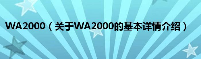 本文关于WA2000的基本详情介绍就讲解完毕,希望对大家有所帮助。