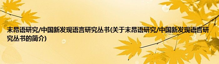 本文关于末昂语研究/中国新发现语言研究丛书的简介就讲解完毕,希望对大家有所帮助。