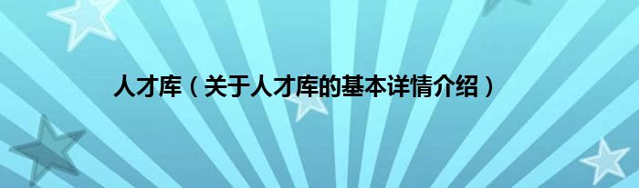 本文关于人才库的基本详情介绍就讲解完毕,希望对大家有所帮助。