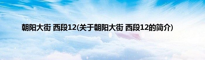 本文关于朝阳大街 西段12的简介就讲解完毕,希望对大家有所帮助。