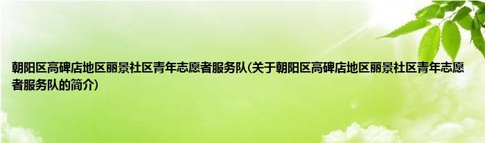 1、 朝阳区高碑店地区丽景社区青年志愿者服务队是由朝阳区高碑店地区青年志愿者服务队领导下的志愿团体。