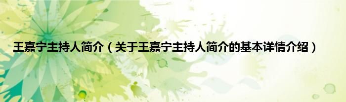 本文关于王嘉宁主持人简介的基本详情介绍就讲解完毕,希望对大家有所帮助。