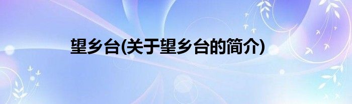 大家好,望乡台,关于望乡台的简介很多人还不知道,现在让我们一起来看看吧!