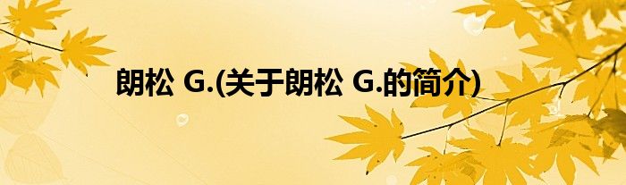 大家好,朗松,G.,关于朗松,G.的简介很多人还不知道,现在让我们一起来看看吧!