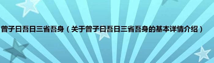 曾子曰吾日三省吾身(关于曾子曰吾日三省吾身的基本详情介绍)