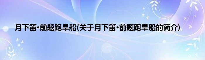 本文关于月下笛·前题跑旱船的简介就讲解完毕,希望对大家有所帮助。