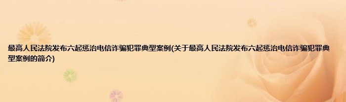 大家好,最高人民法院发布六起惩治电信诈骗犯罪典型案例,关于最高人民法院发布六起惩治电信诈骗犯罪典型案例的简介很多人还不知道,现在让我们一起来看看吧!