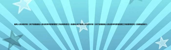 大家好,最高人民法院印发《关于加强基层人民法院审判质量管理工作的指导意见》的通知,关于最高人民法院印发《关于加强基层人民法院审判质量管理工作的指导意见》的通知的简介很多人还不知道,现在让我们一起来看看吧!
