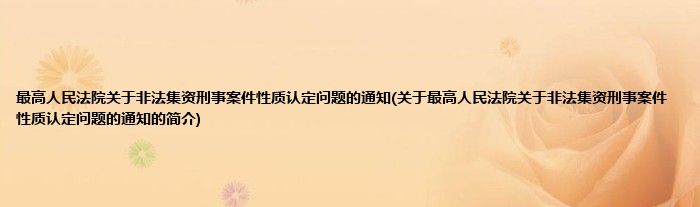 本文关于最高人民法院关于非法集资刑事案件性质认定问题的通知的简介就讲解完毕,希望对大家有所帮助。