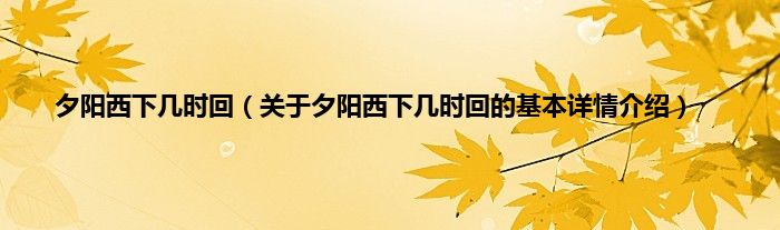 本文关于夕阳西下几时回的基本详情介绍就讲解完毕,希望对大家有所帮助。