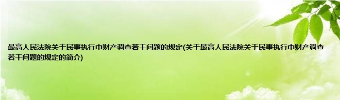 本文关于最高人民法院关于民事执行中财产调查若干问题的规定的简介就讲解完毕,希望对大家有所帮助。
