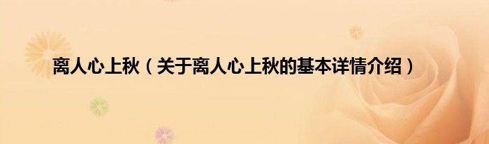 本文关于离人心上秋的基本详情介绍就讲解完毕,希望对大家有所帮助。