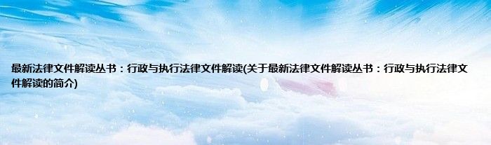 本文关于最新法律文件解读丛书:行政与执行法律文件解读的简介就讲解完毕,希望对大家有所帮助。