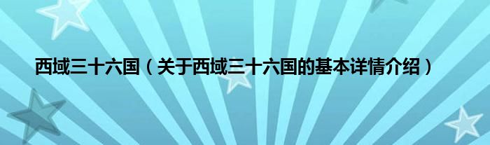 本文关于西域三十六国的基本详情介绍就讲解完毕,希望对大家有所帮助。
