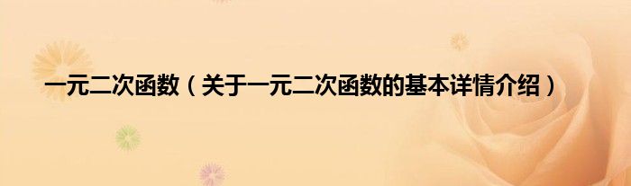 本文关于一元二次函数的基本详情介绍就讲解完毕,希望对大家有所帮助。