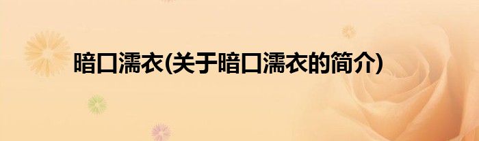 本文关于暗口濡衣的简介就讲解完毕,希望对大家有所帮助。