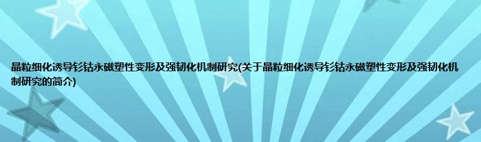 本文关于晶粒细化诱导钐钴永磁塑性变形及强韧化机制研究的简介就讲解完毕,希望对大家有所帮助。