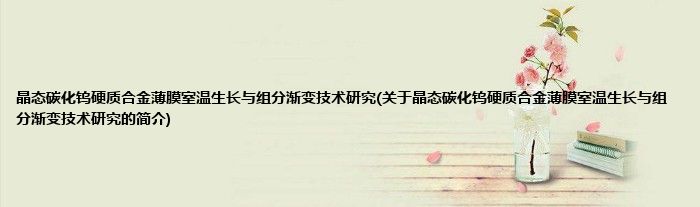 本文关于晶态碳化钨硬质合金薄膜室温生长与组分渐变技术研究的简介就讲解完毕,希望对大家有所帮助。