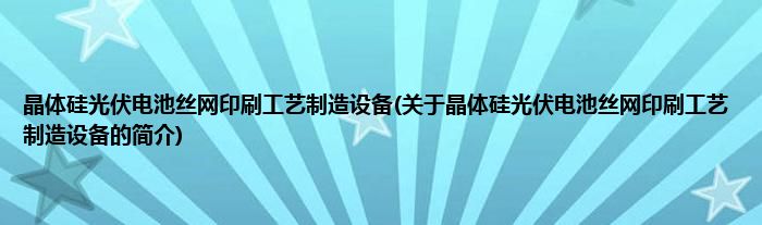 晶体硅光伏电池丝网印刷工艺制造设备(关于晶体硅光伏电池丝网印刷工艺制造设备的简介)