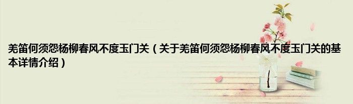 本文关于羌笛何须怨杨柳春风不度玉门关的基本详情介绍就讲解完毕,希望对大家有所帮助。