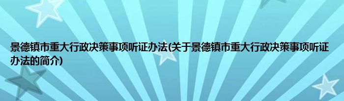 本文关于景德镇市重大行政决策事项听证办法的简介就讲解完毕,希望对大家有所帮助。